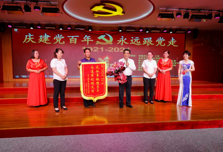 庆祝建党百年活动中,职工代表向刘永连书记敬赠锦旗