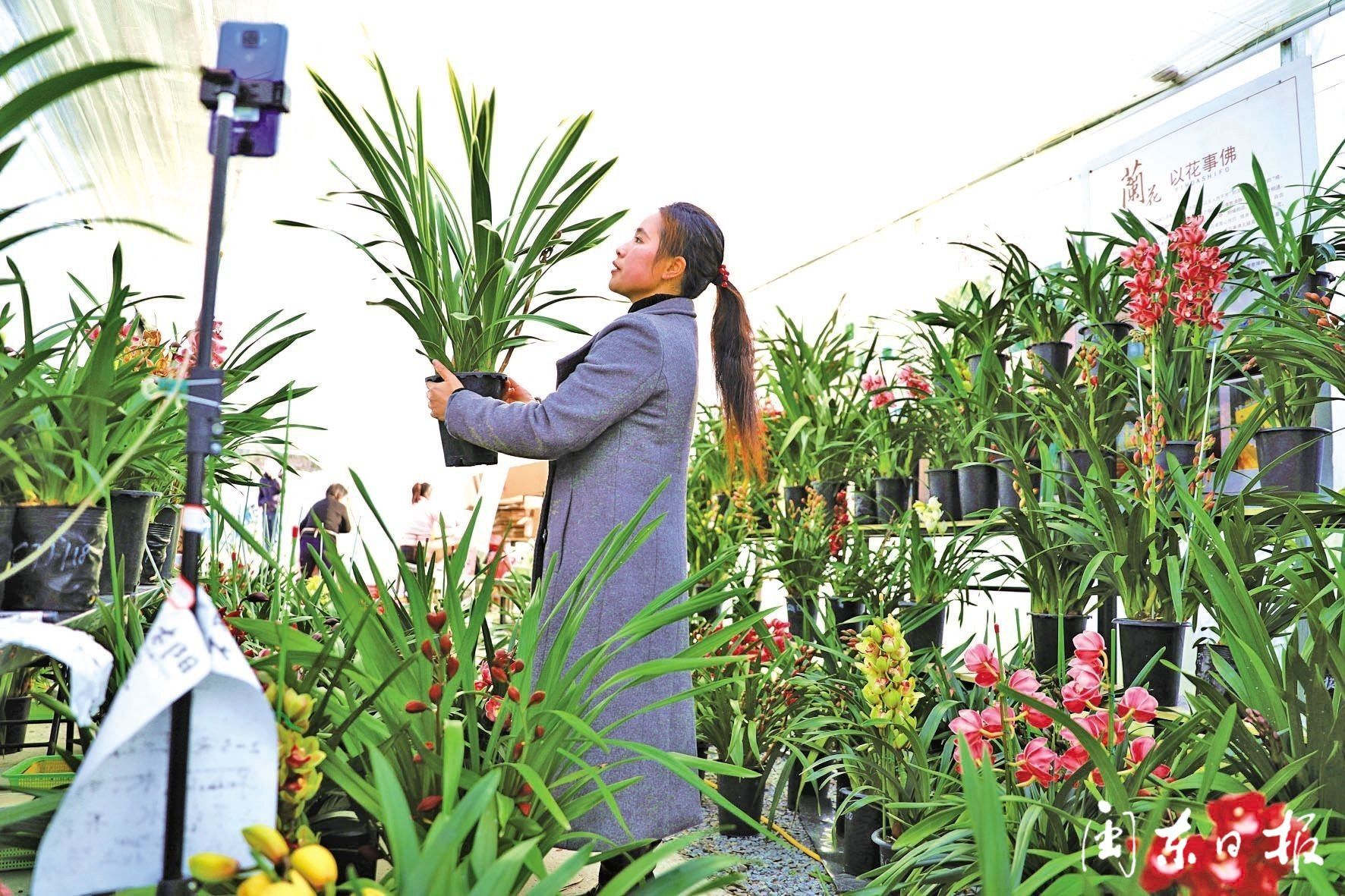 寒冬时节,周宁却花香正浓。在宁德向山兰园萌源基地内,工人正忙着打包、装箱大花蕙兰盆栽。而另一边大花蕙兰直播间内,主播正为网友们介绍着一株株品种多样、花姿艳丽的大花蕙兰盆栽。