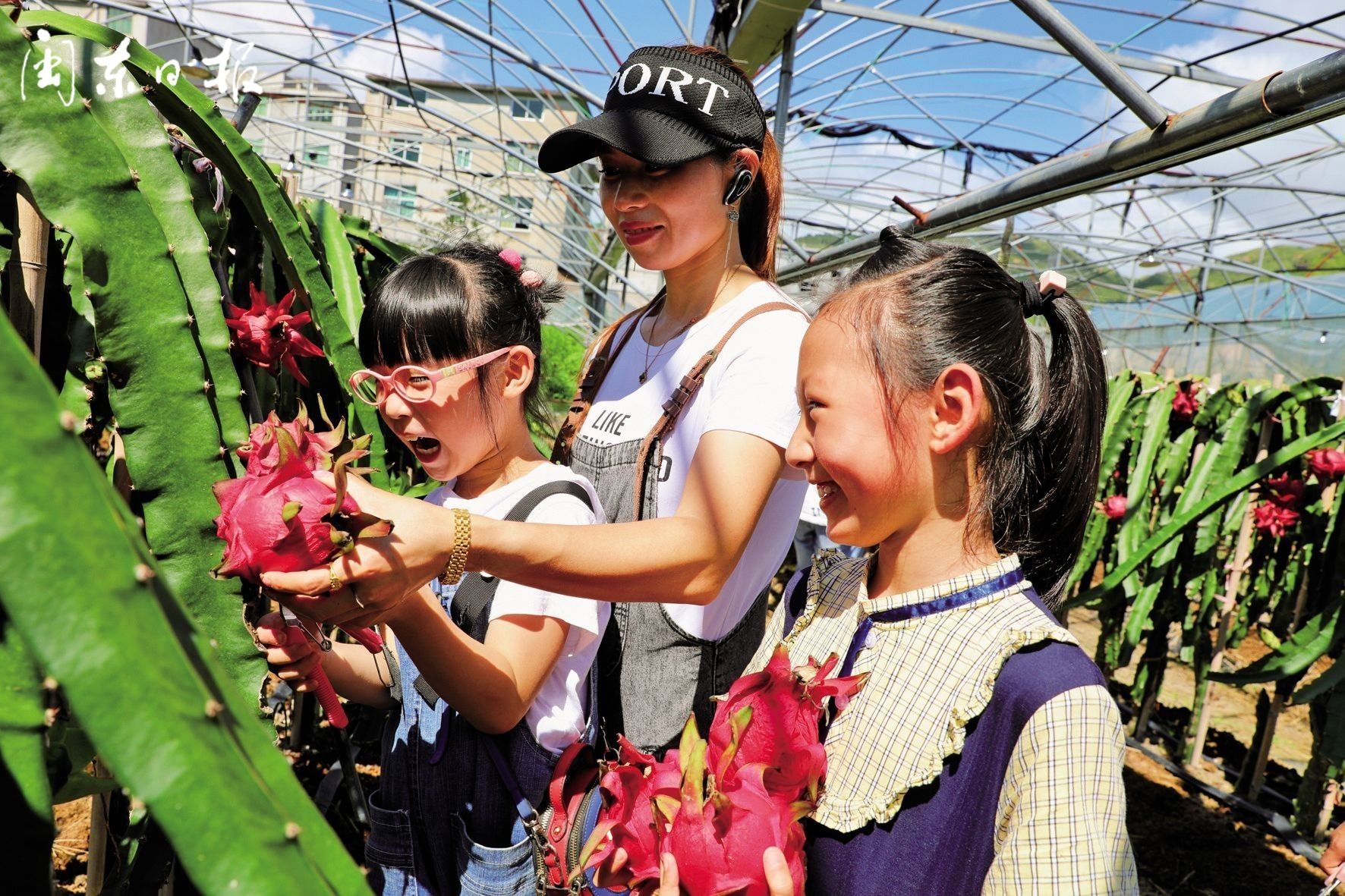 游客正在采摘火龙果