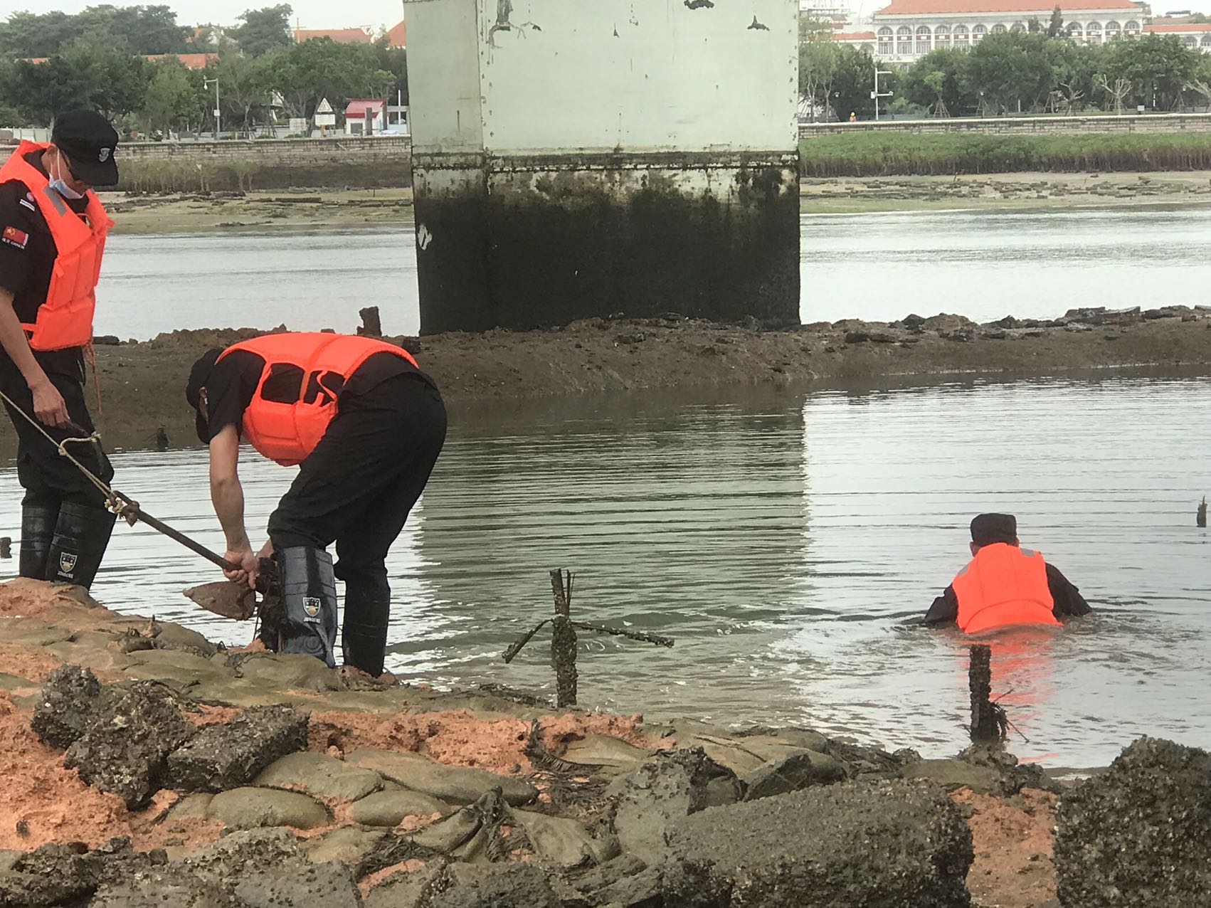 据了解,该处新增养殖设施主要是通过在厦门大桥下水潭插竹竿、周边乱石堆上设置网袋、滩涂上埋入塑料筐等多种方式进行养殖。由于现场海况复杂,给拆除工作带来不小的挑战。但执法人员态度坚决,组织人员跳入没腰的水潭、踩着近半米深的淤泥、爬上乱石堆,用刀割、手拽,逐一对违法设置的海蛎养殖设施进行拆除。