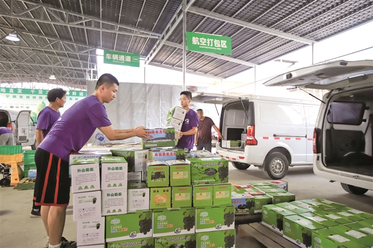 同时,现代物流让福安的特色农产品如虎添翼,销售半径不断扩展。目前,福安市已建立3个乡镇级、8个村级葡萄专业交易市场,拥有23个标准化分级分拣包装点,葡萄包装能力达到每天12万箱,形成了“村物流点收集+乡镇汇总+干线物流+城市落地配送”福安鲜果物流模式,实现省内当日达、周边省份次日达,让葡萄、水蜜桃、脐橙等鲜果从“枝头”直抵“舌头”。