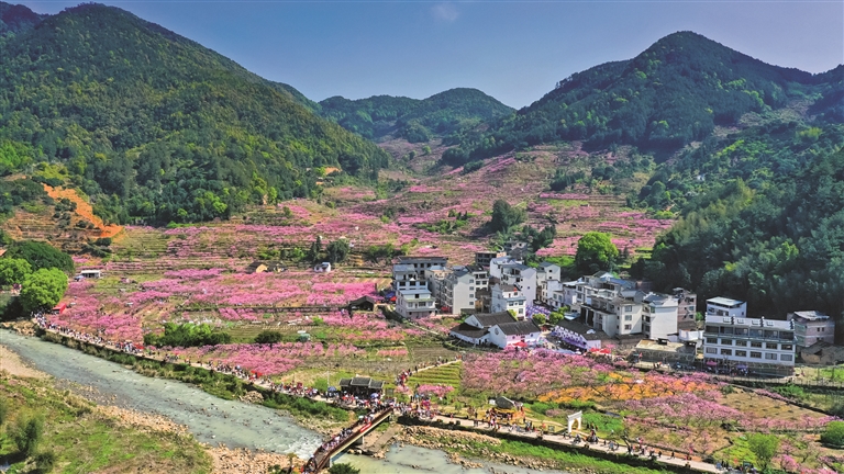 农历“三月三”是畲族重要的传统节日,此时正值福安西部畲区万亩桃花盛开时节,一年一度的桃花节畲歌会,吸引了数十万各地游客慕名到此观赏桃花、聆听畲歌、品尝美食,“桃”醉在浓郁的畲家风情之中。