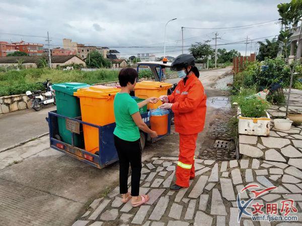 村民主动参与垃圾分类。(同安区市政园林局供图)
