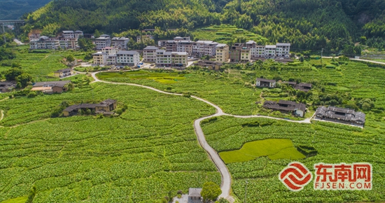 永春县桂洋镇桂洋村连片种植的槟榔芋,成为了村里的美景。