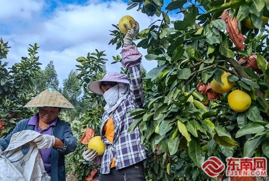 眼下正是各地秋粮丰收、瓜果飘香的季节,步入漳州市长泰区枋洋镇青阳村,放眼望去,1750多亩的柚子树分布在村庄的山坳中,一个个沉甸甸的柚子宛如“黄灯笼”挂满枝头,一派喜人的丰收景象。