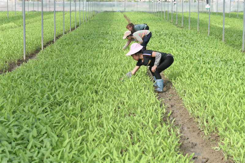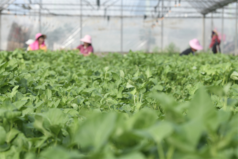 3月19日,福建省福州市马尾区琅岐新金东农场,村民在大棚内劳作。