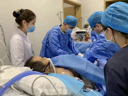 除了主动脉夹层手术,近期该科还对血流动力学不稳定的高危肺动脉栓塞患者进行肺动脉取栓和ECMO支持治疗,对3.6kg的婴幼儿进行先天性心脏病的矫治手术,为心脏肿瘤患者进行急诊手术等。此外,该科还积极参与救治新冠感染患者,成功为80岁患有冠心病、心功能不全的新冠肺炎患者进行俯卧位治疗,患者的氧饱和度从不足90%提升到近100%,免受插管之苦。科室医生护士顶着发烧头痛坚持在岗,完成繁重的重症患者抢救工作,有的医护人员连轴值班24小时,坚持了4天4夜。