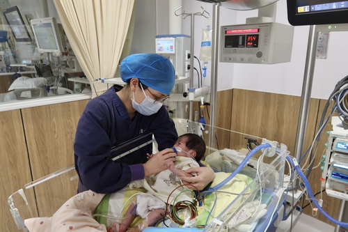 心脏大血管外科为3.6kg的婴幼儿实施先天性心脏病手术。