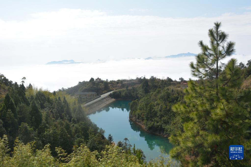 位于军营村内的七彩池景观。新华社记者颜之宏 摄