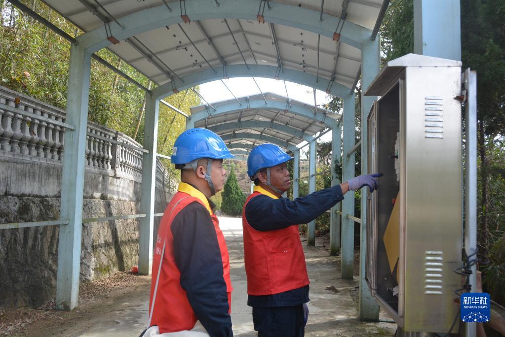 电力工人正在维护检修军营村的光伏设备。新华社记者颜之宏 摄