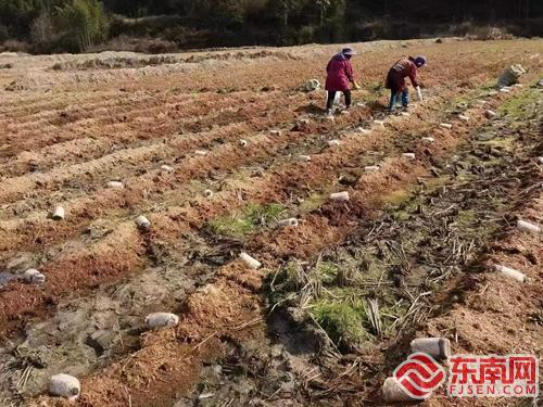 现场,村民们分工明确,一部分村民把竹荪菌种剥好,一部分村民再将竹荪菌种一个个地种进田垄中,再挖泥盖上、披上稻草等,为的就是能让竹荪顺利生长。