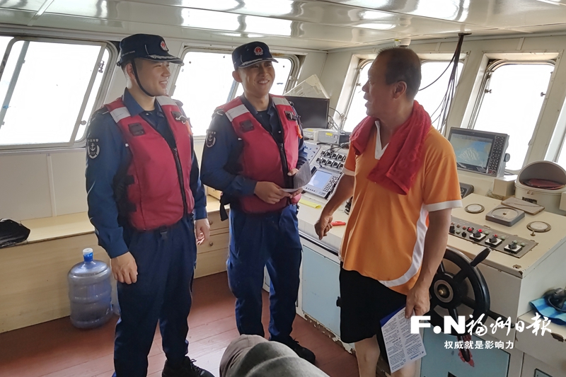 海警执法员向船长了解物资准备情况。陈铭斐 摄