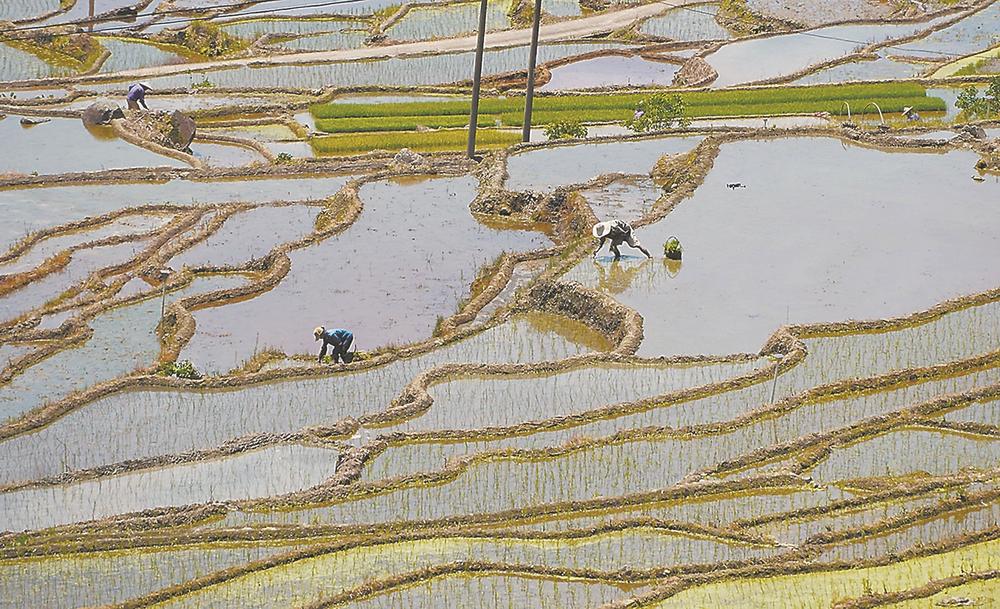 20日,在全球重要农业文化遗产——尤溪联合梯田,农户忙着整地插秧,一派农忙景象。近年来,三明市尤溪县以“传统耕种+旅游”为思路,在联合梯田核心区建立千亩中稻示范基地,引进水稻新品种,推广绿色防控“双减”集成技术,形成梯田稻米、花生、田埂豆“梯田三宝”品牌体系,成功打造南方梯田种植模式。2023年,联合梯田游客量达32.4万人次,实现旅游收入123.6万元。