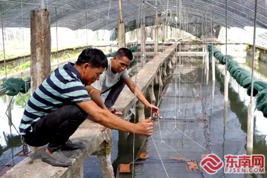 “以前养鱼没什么效益,然后我们村那个许明竹他是领头人先养甲鱼,跟他交流,说他养甲鱼效益不错,所以我们就转过来了。目前养了10万只,一年的经济效益大概是50万元。”漳浦县合昌甲鱼养殖专业合作社经理 吴聪佑介绍说,他有一个30亩的水库,原先主要养殖叉尾鮰和罗非鱼,加入合作社后,他经常与许明竹探讨,两人配合默契,他们研究出了一套“生态水库鱼鳖混养、虾鳖轮养”的新模式。