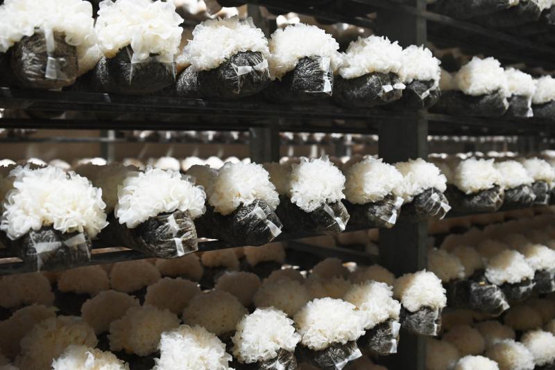 176间种植车间内,菇架依次排开,菌棒整齐排列,顶端的银耳花竞相绽放、洁白如雪,空气中弥漫着淡淡的菌香,一片生机勃勃的景象映入眼帘。11月9日,这是记者走进位于宁德市古田县大桥镇的天天源生物科技有限公司看到的景象。