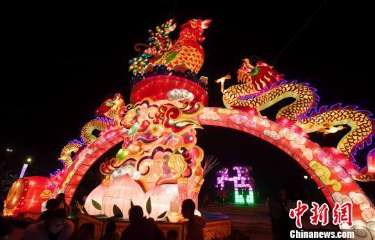 巨型鸡年生肖花灯惊艳“两马同春闹元宵”灯会。