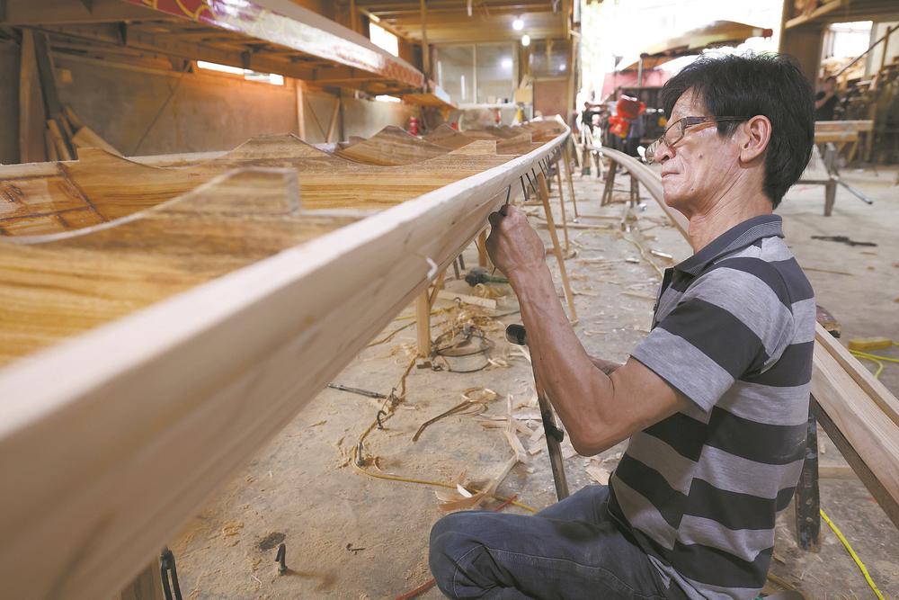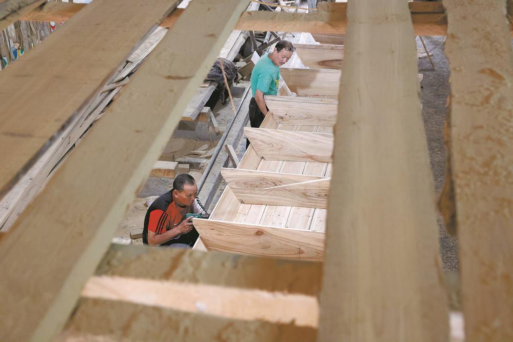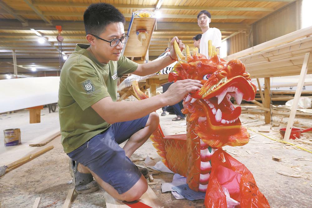 端午临近,福州市闽侯县南通镇方庄村迎来造船旺季,多家龙舟厂的古木船工匠加班加点赶制传统龙舟,满足市场需求。