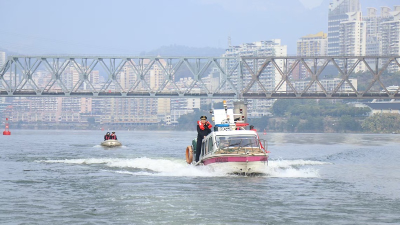 福州市海洋与渔业执法支队执法人员在闽江干流大桥段开展禁渔期清网行动。