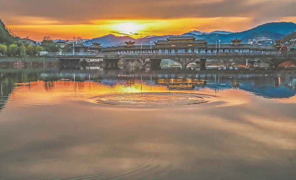 近年来,南平市政和县以小流域综合治理为契机,对七星河、龙潭溪流域进行全面整治,河道通畅,防洪抗旱能力、生态环境全面提升。图为黄昏夕照,七星河面霞光倾洒、静谧无澜、气韵绵绵。