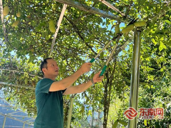 金秋九月,硕果盈枝。9月16日,走进三明泰宁县下渠镇铭鑫源家庭农场,藤蔓间缀满饱满的果实,部分早熟的果子已微微开裂,露出雪白果肉;绿荫果树下,鸵鸟领着鸡鸭鹅悠闲踱步,一幅“三季有花、四季有果、林下有禽”的立体生态画卷徐徐展开。