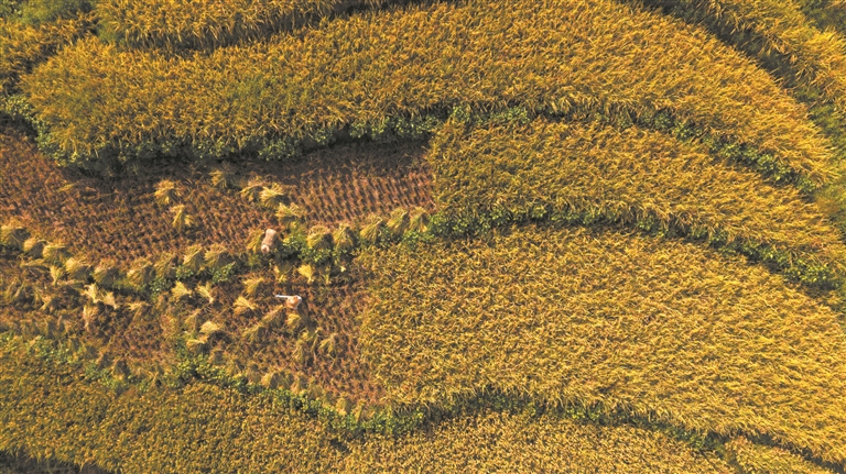 群众忙着收割稻谷