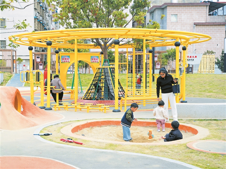 改造后的瀛洲移民村,娱乐健身设施齐备,居民休闲有了好去处。