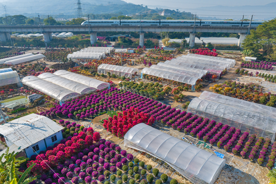 在高新区九湖镇,动车不时从高架桥上飞驰而过,桥下是王伟斌27亩的三角梅种植基地。这位从业近十年的花农,见证了漳州三角梅从地方特色走向全国乃至中东市场的全过程。