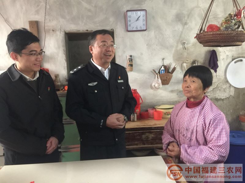 中国农业新闻•福建三农网福州2月23日讯(朱军伟) 近日,省公安厅党委副书记、副厅长张东鸣带领厅警务保障部部长陈枫深入闽清县东桥镇义由村开展慰问活动。