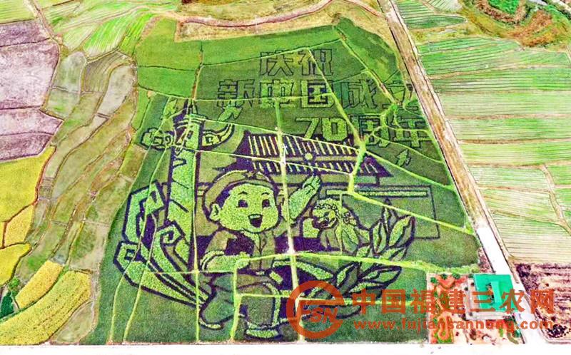 政和县外屯乡、仙游县钟山镇的稻田画,重点宣传建国70周年发展成就。