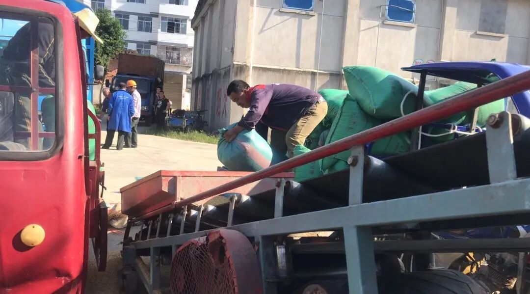 “手中有粮,心中不慌。”在朱口镇粮库院里,前来运送粮食的车辆络绎不绝。四、五辆满载着稻谷的三轮车正排队等着过秤,黄澄澄的稻谷粒通过输送带由卡车车厢传进粮囤,输送带上的稻谷顷流而出,划出一道道金黄色,颇为一番丰收景色。
