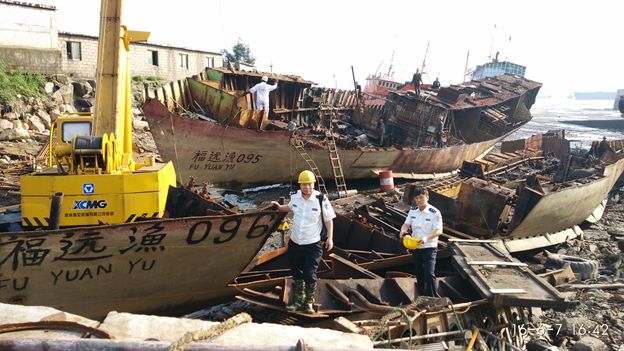 据介绍,为进一步加强远洋渔船更新建造管理,保障远洋渔业生产安全,推动远洋渔船及船用装备升级,促进远洋渔业持续健康发展,省海洋与渔业执法总队严格按照《农业部办公厅关于印发〈海洋捕捞渔船拆解操作规程(试行)〉的通知》和《福建省海洋捕捞渔船拆解管理暂行规定》文件精神,指派执法人员到现场对拟拆解渔船进行核实,确保拆解的渔船与渔业船舶证书证件记载的渔船一致。在渔船拆解过程中,执法人员对渔船拆解严格实施现场监督,拍摄渔船拆解现场监督管理的影像资料,督促船厂做好防治污染和安全保障措施,确保渔船拆解过程中的环境保护和安全。