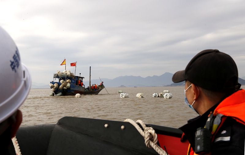 12月9日凌晨,福建省海洋与渔业执法总队组织总队直属二、四支队以及福州市、连江县、长乐区海洋与渔业执法机构,联合海警、海事部门在闽江口“日桩礁”“七星礁”、平潭东庠岛周边海域同步开展联合打击违规张网作业专项执法行动。