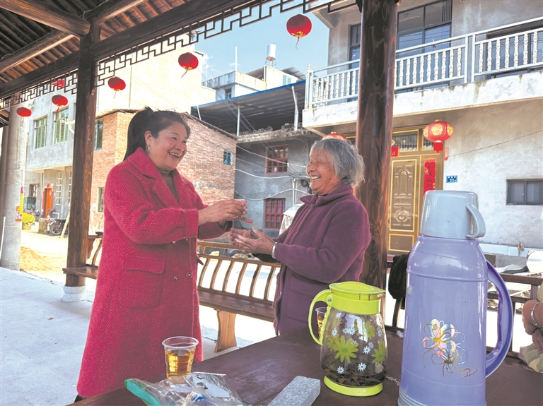 不仅如此,考虑到村民和来此休闲的人可能有如厕需求,周光候毫不犹豫地将自家厕所免费开放。而他的妻子阮永玉,也会烧上一壶热气腾腾的茶水,摆在长廊里,给过往的人们解渴。他们的这些平凡善举,就像春日暖阳,无声却有力地感染着身边人,赢得了村民一致称赞,也为美丽乡村建设注入力量。